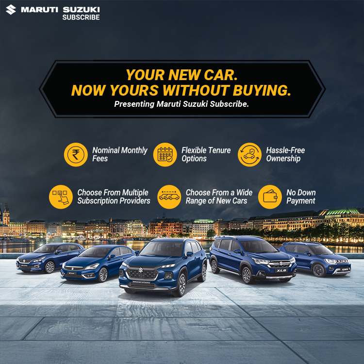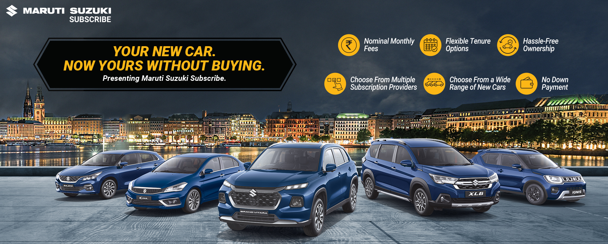 Maruti Suzuki Subscribe enables all customers to enjoy driving their preferred Maruti Suzuki cars without having to deal with all the financial responsibilities that come with owning a car.All you need to do is opt for a monthly subscription plan at a fixed monthly fee, which includes the routine maintenance and insurance costs, and choose a flexible tenure. At SWG Car World in, Durgapur Central, Durgapur, all Hatchback, Sedan, SUV, the MUV models line-up includes Baleno, Invicto, EVitara, Jimny, Ciaz, Ignis, Fronx, Grand Vitara, XL6. Here, you will enjoy Maruti Suzuki Subscribe benefits such as: